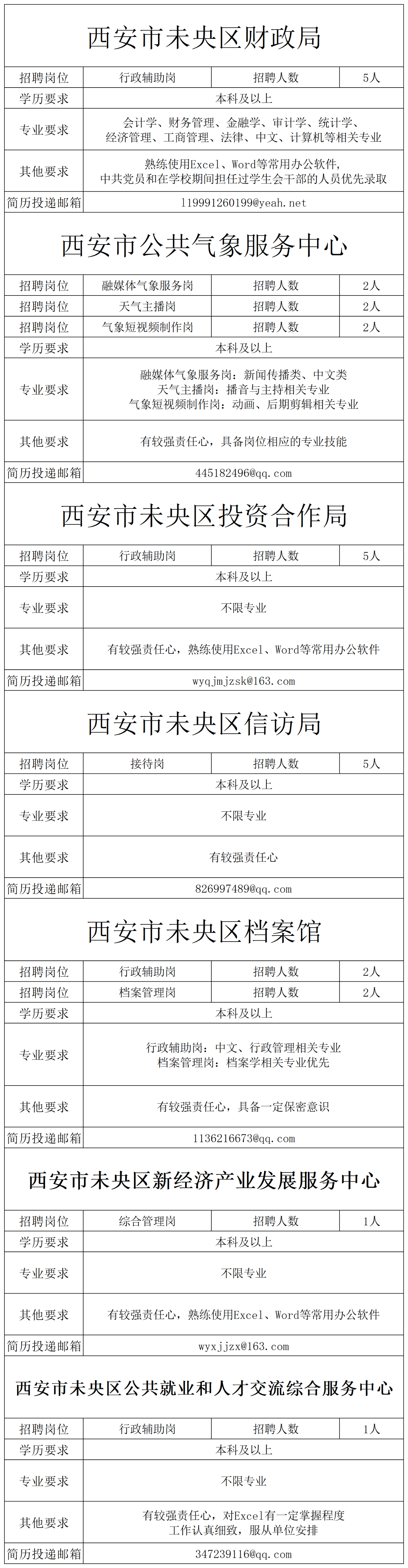 西安未央辖区机关事业单位就业见习人员招聘信息