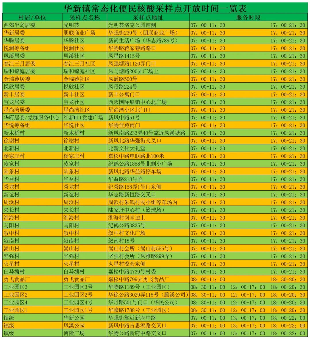 华新镇最新常态化核酸采样点时间安排