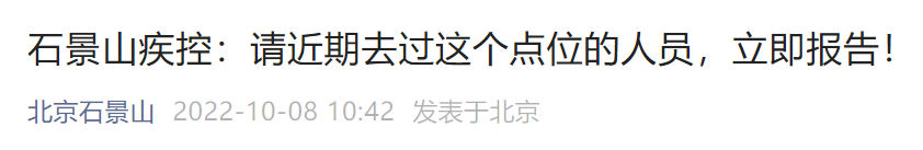 10月8日北京石景山提醒近期去过这个点位人员立即报告