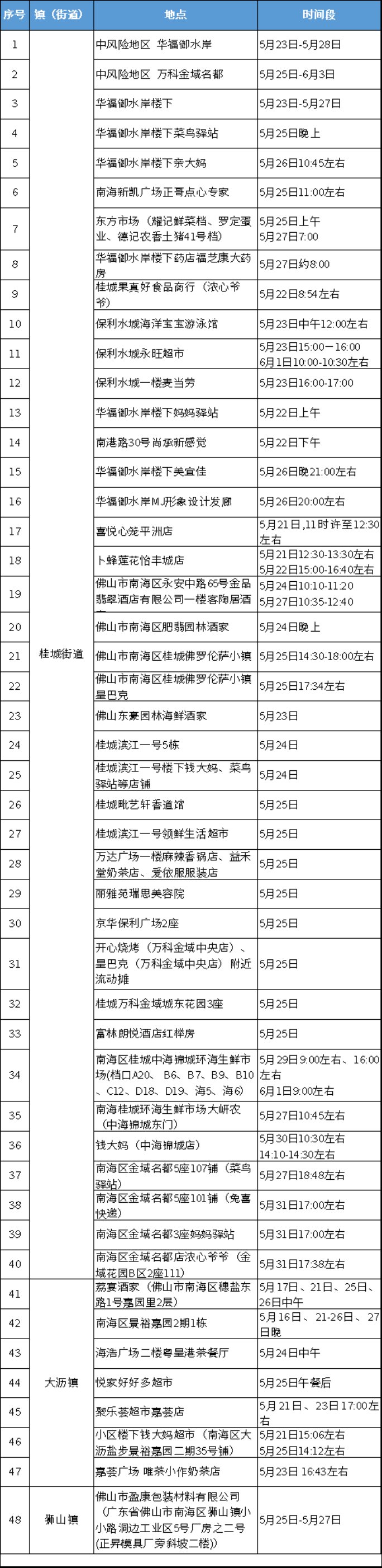 佛山市南海区通报近期新冠病毒感染者涉及的重点场所或小区