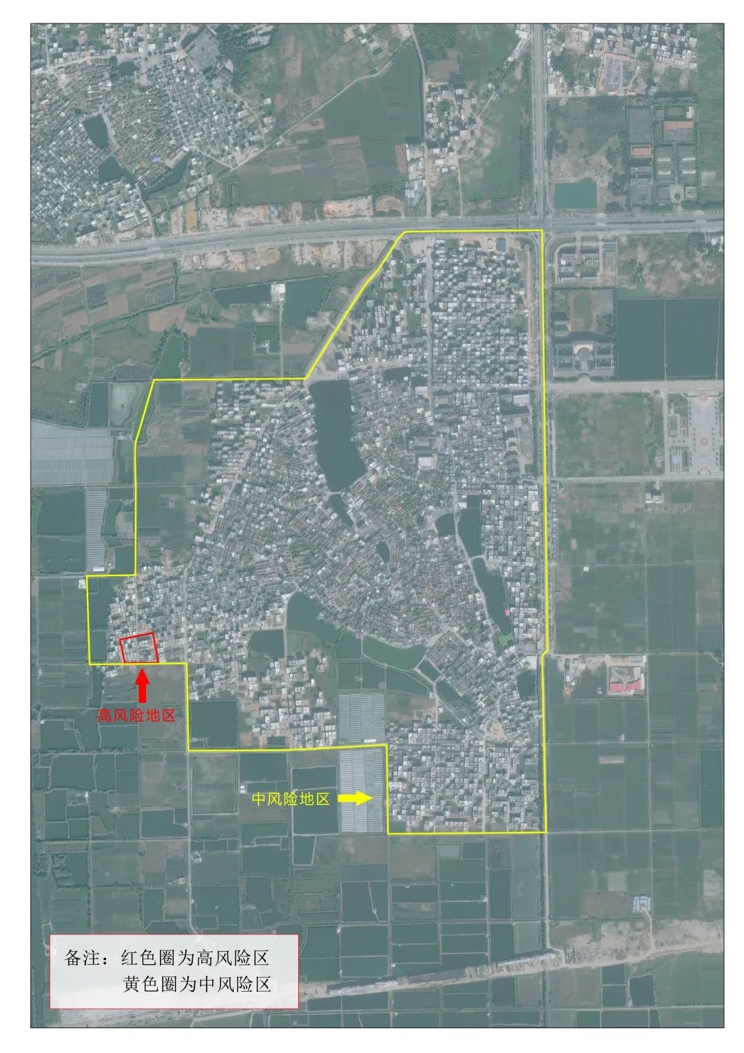 高、中风险区划定图〔红色区域为高风险区、黄色区域为中风险区(除高风险区外)