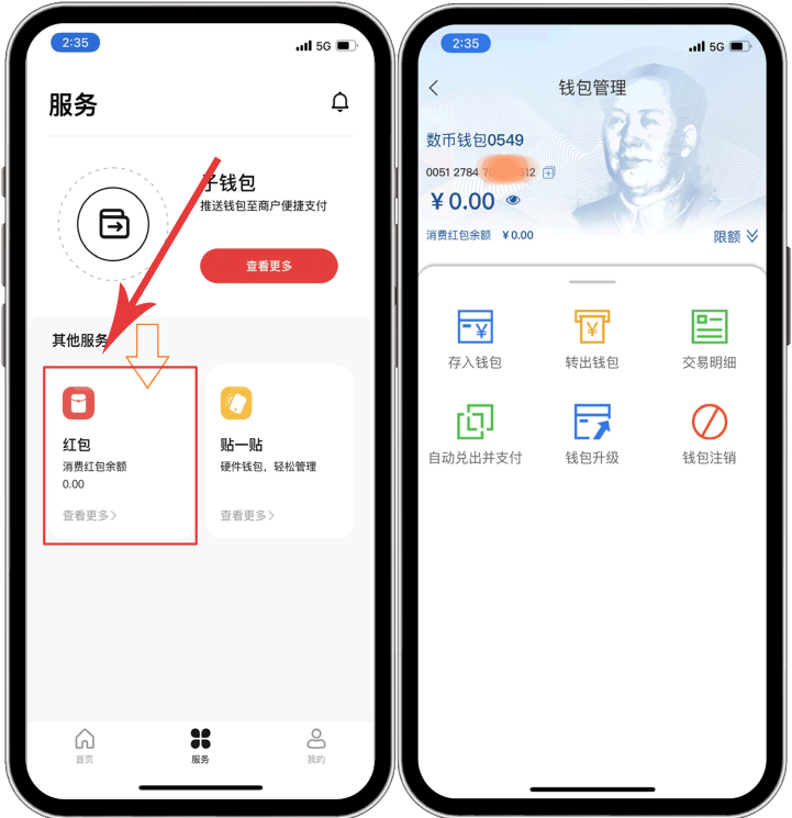 用户获取购车补贴后,可在“数字人民币”APP,【服务】的【红包】栏,查看补贴的红包。