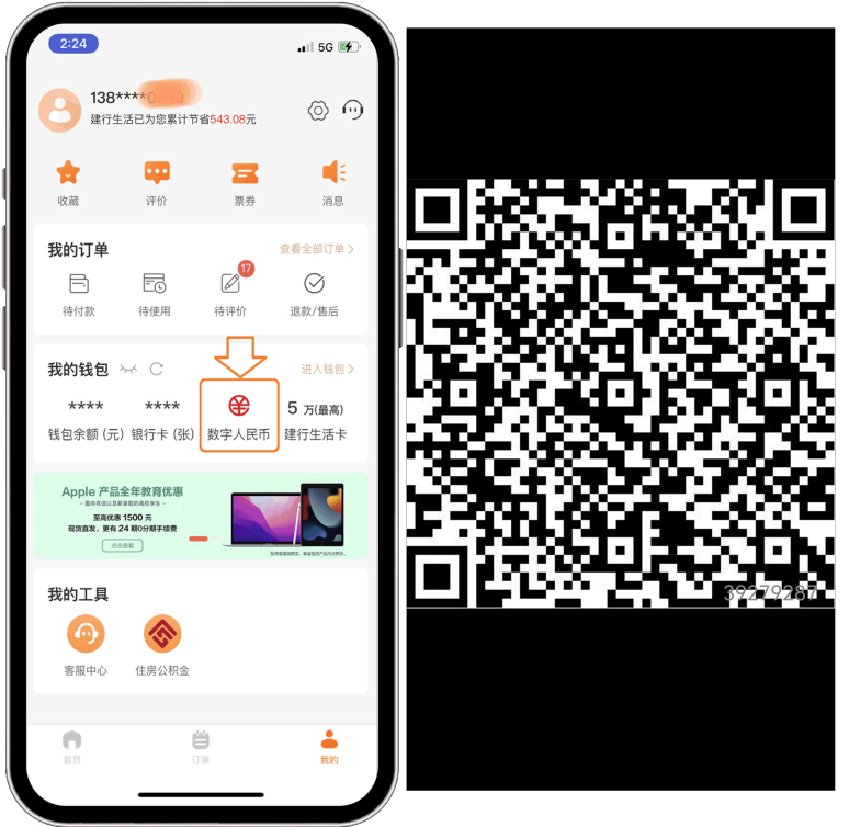 ③选择建行开通数币钱包