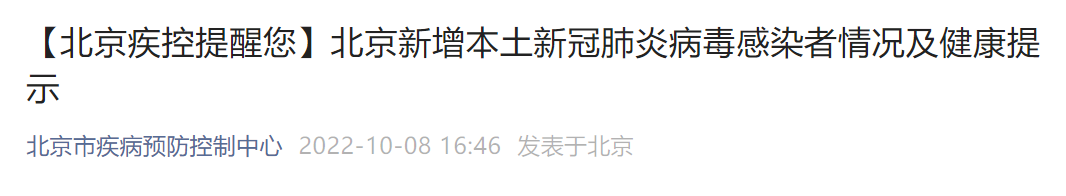 10月8日0时至15时北京新增本土感染者情况及健康提示