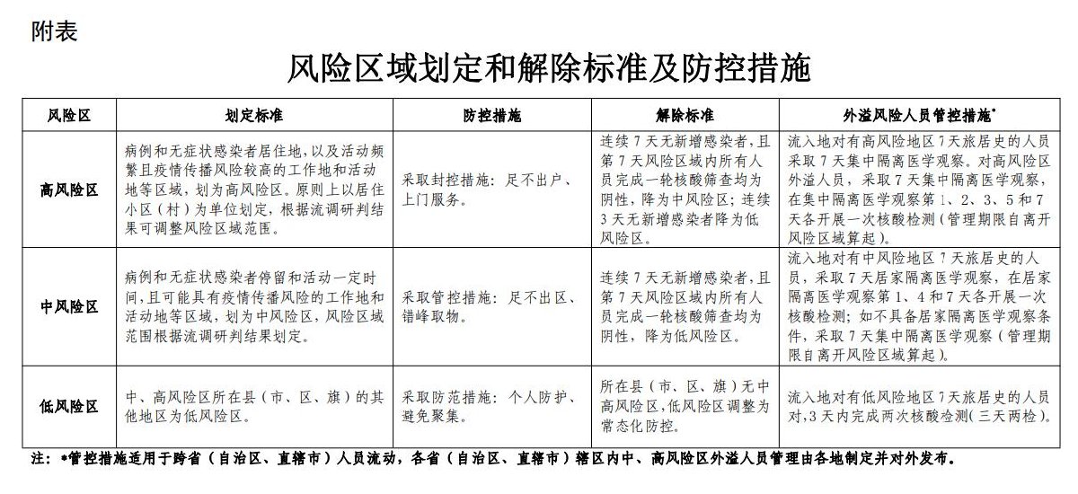 连续7天无新增感染者,且第7天风险区域内所有人员完成一轮核酸筛查均为阴性,降为低风险区。
