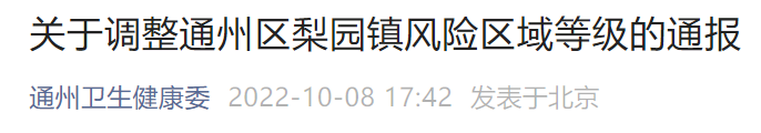 2022年10月8日起北京通州梨园镇风险区域等级调整