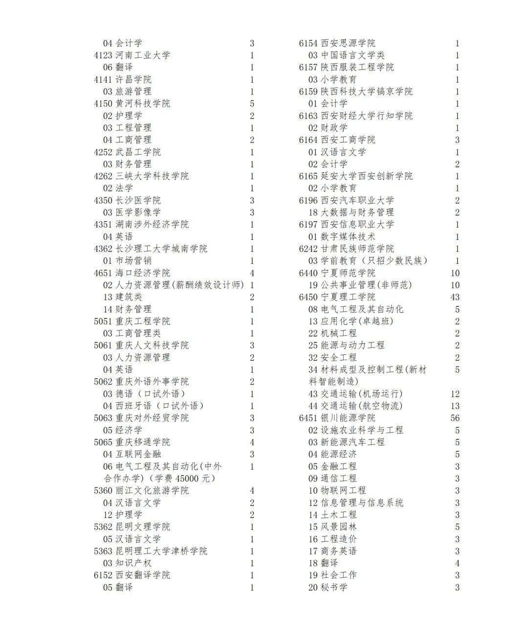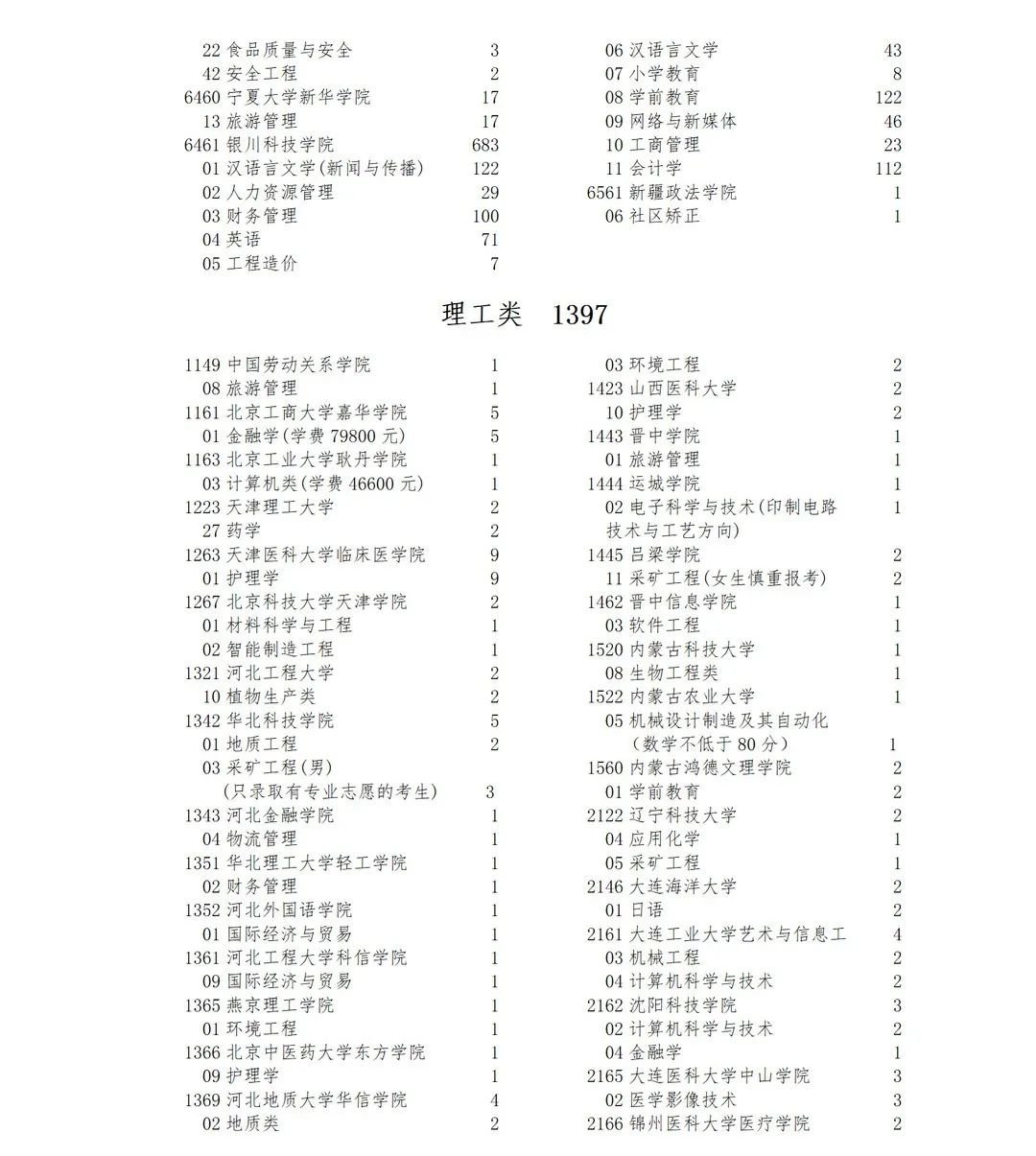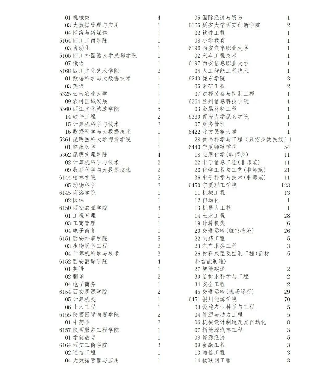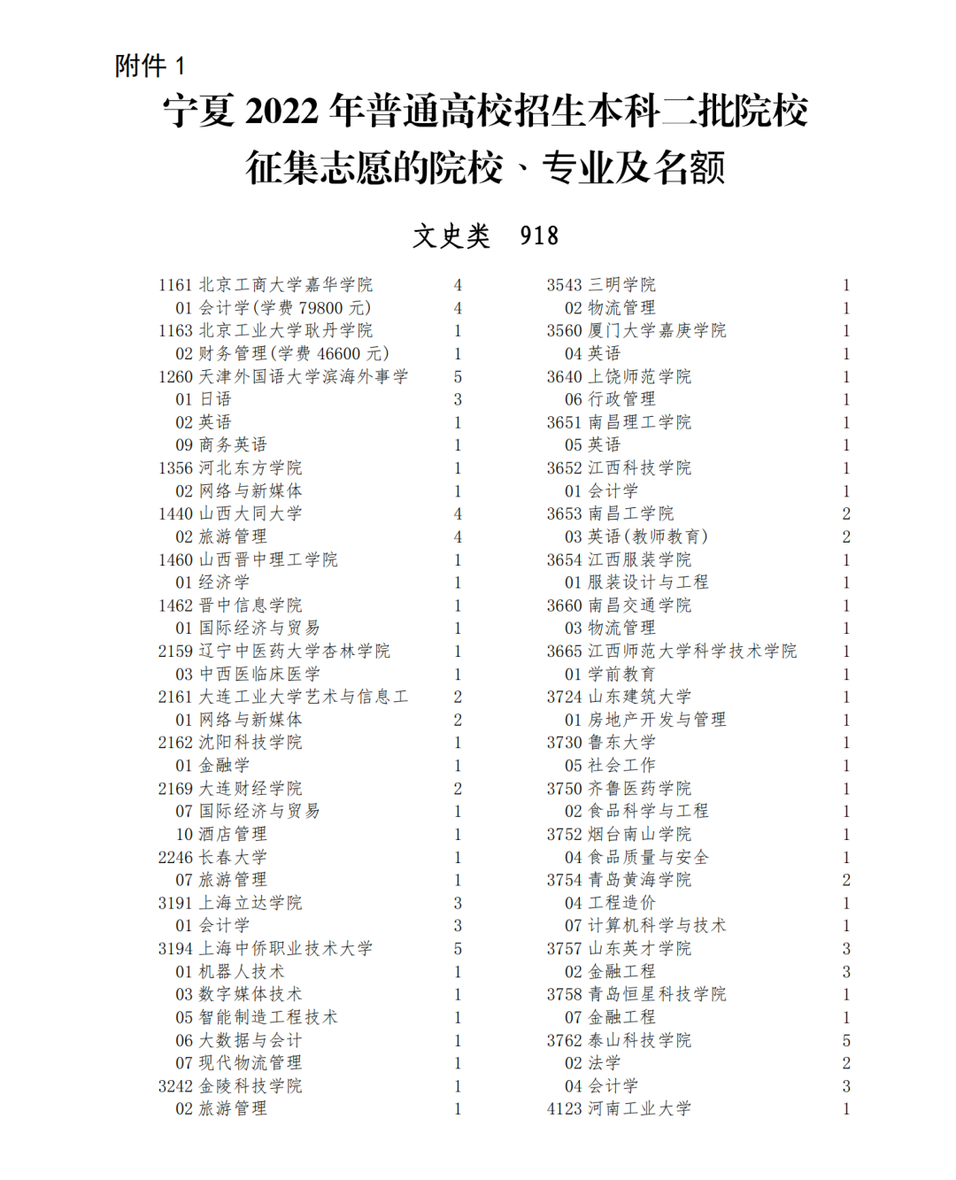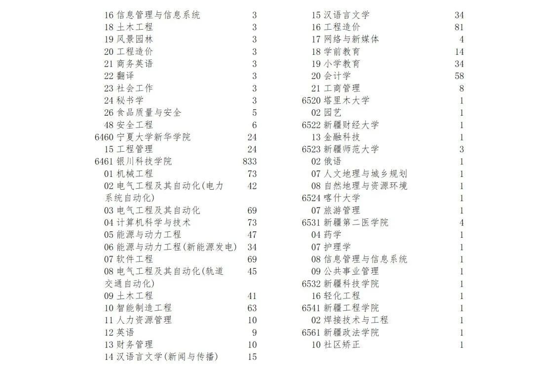 宁夏2022年普通高校招生本科二批院校征集志愿的院校、专业及名额