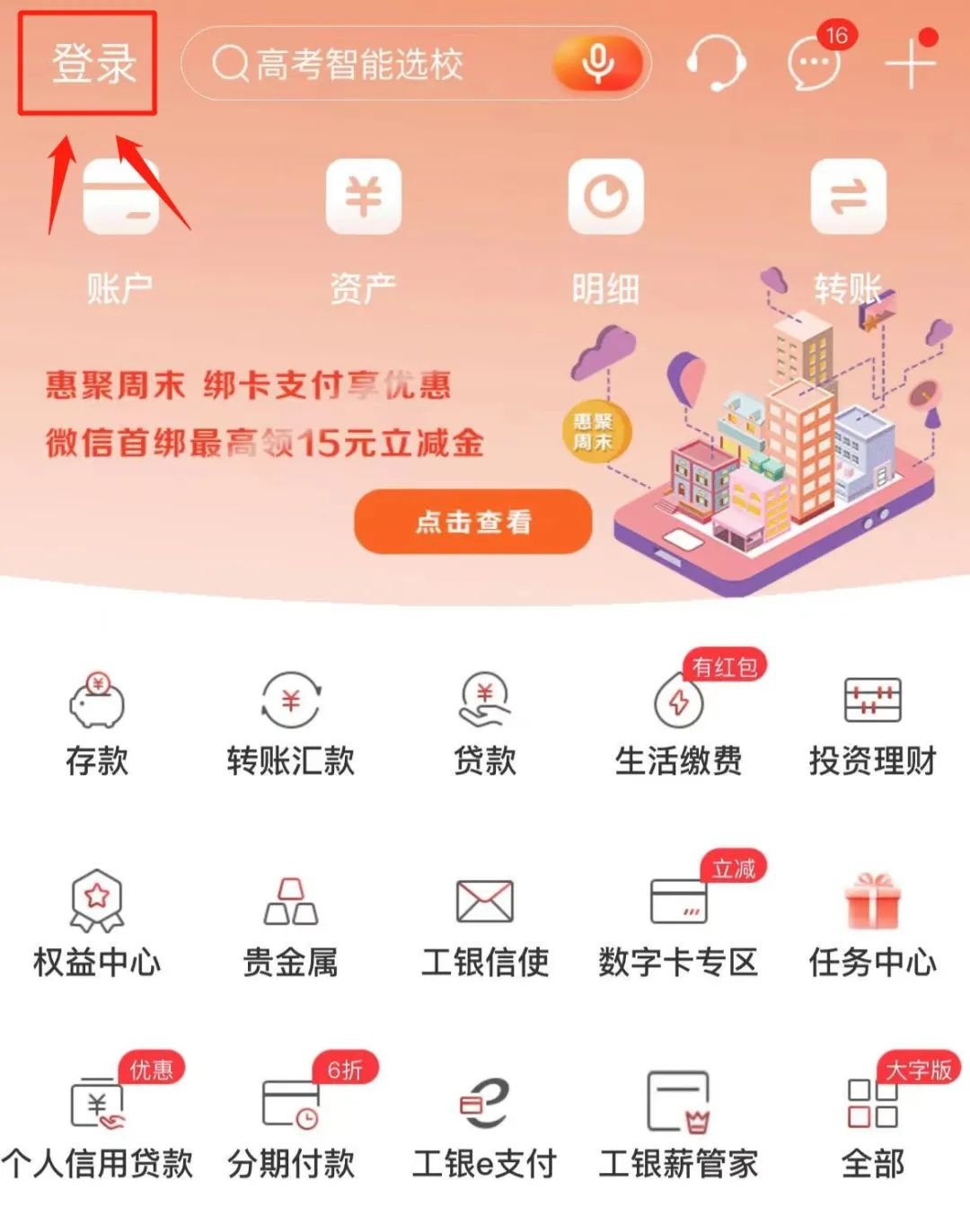 1、进入“中国工商银行”APP,点击左上方“登录”按钮,按照页面提示进行登录验证;