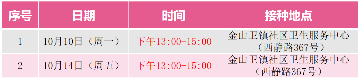 10月10日-16日金山卫镇新冠疫苗接种安排