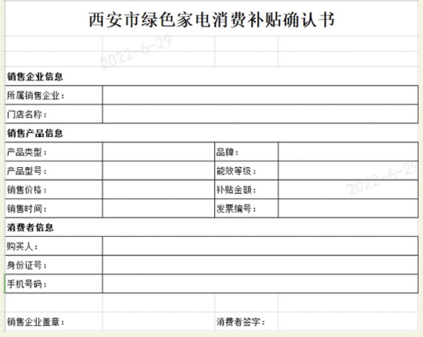 门店收银员引导消费者在《西安市绿色家电消费补贴确认书》填写信息,并签字。待收银员复印发票完成后即完成补贴确认。