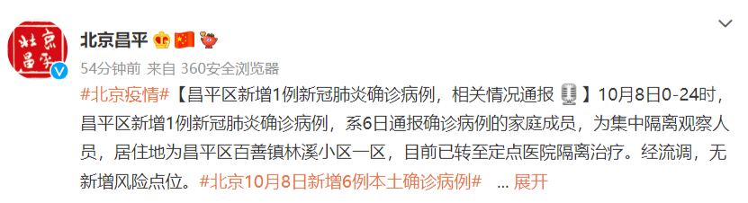 10月8日0至24时北京昌平新增1例确诊病例情况通报
