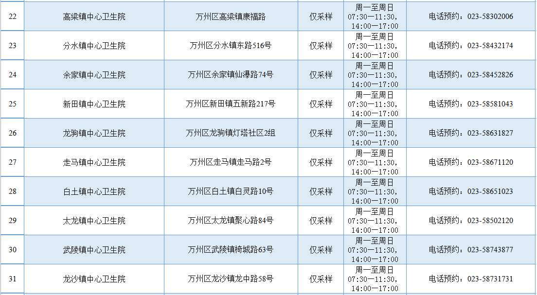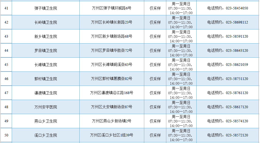 重庆万州区核酸检测机构信息一览表(万州核酸检测报告)