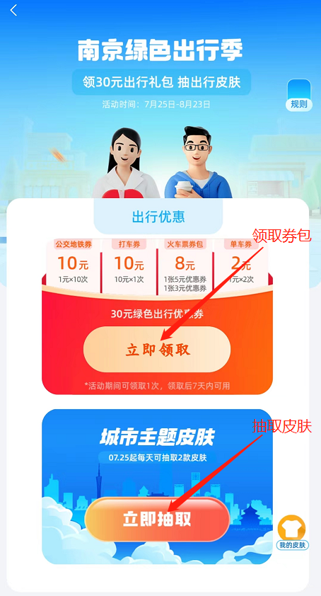 2022年7月25日—8月23日,南京市民上支付宝搜索“文学之都”,即可领取30元出行补贴。