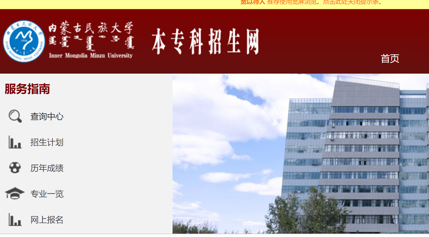 查询入口1:内蒙古民族大学本专科招生网
