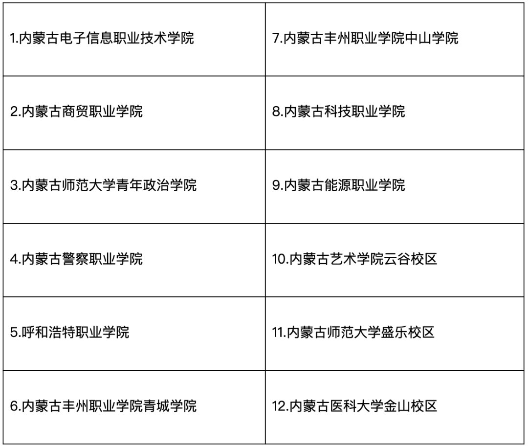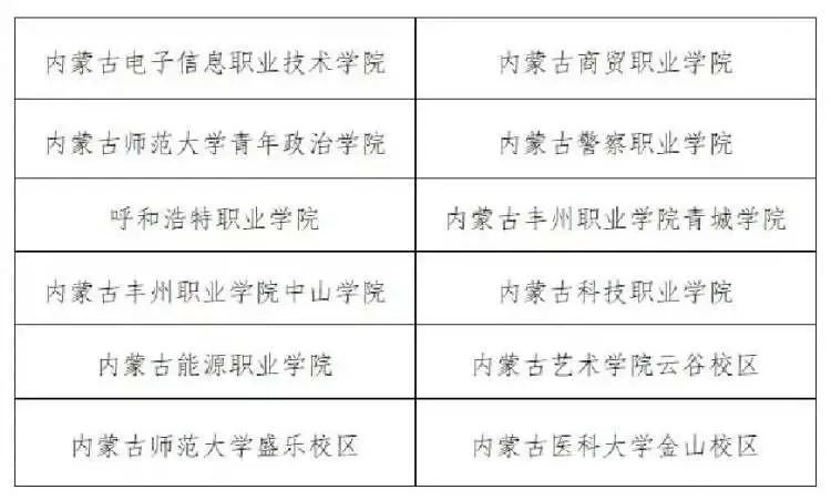一、请就读于以下12所院校的学生或家长通过微信、电话等方式即刻与所在苏木镇(社区)联系,提前报备学生姓名、联系方式、就读院校、家庭住址等各类信息。12所院校名单如下:
