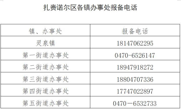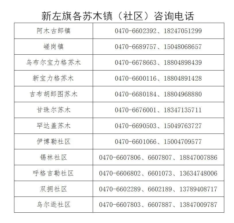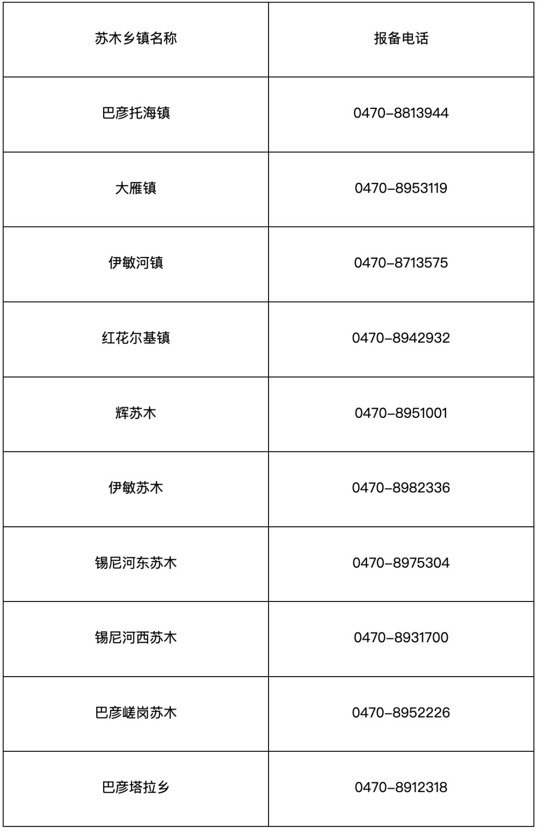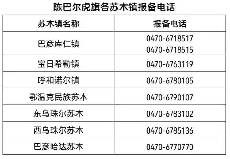 新巴尔虎右旗各苏木镇(社区)报备电话