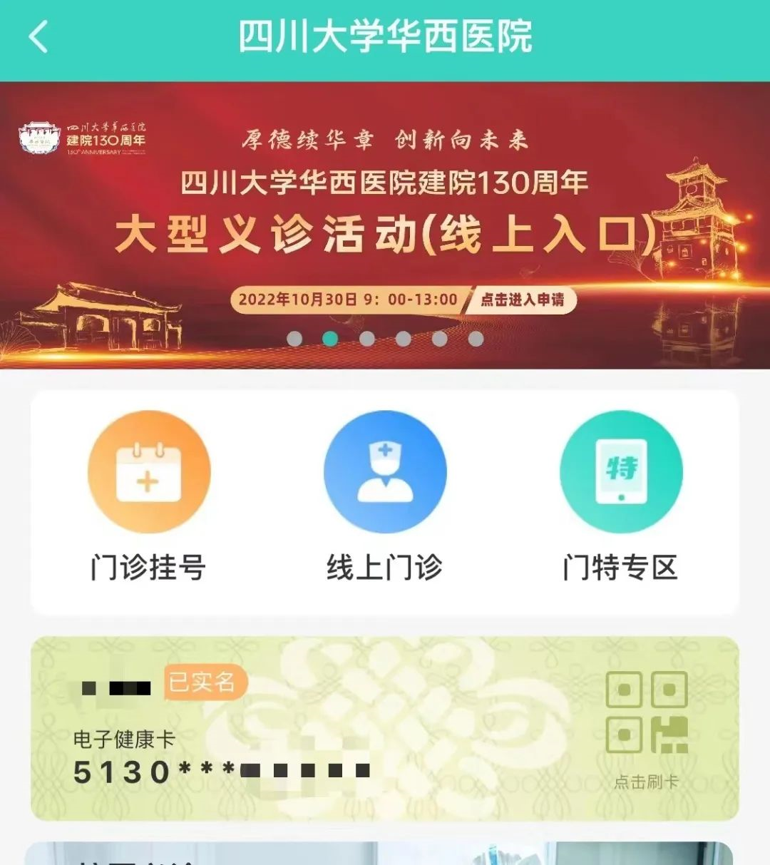 03在“四川大学华西医院”微信公众号选择“诊疗服务”,点击顶部红色宣传图,可直接进入义诊页面。