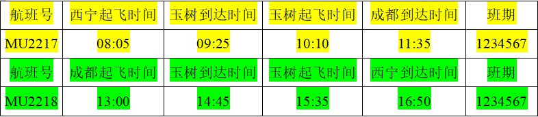 10月24日起恢复西宁=玉树=成都、西宁=玉树往返航班。