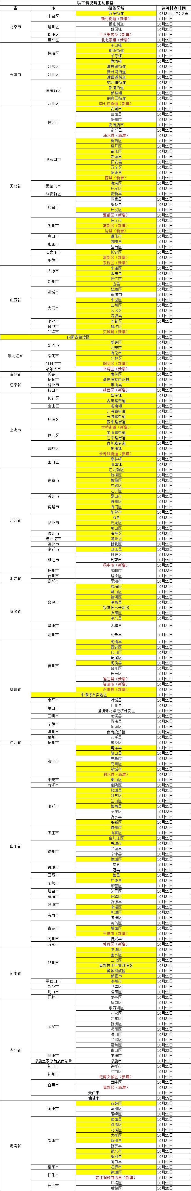 黄底为有中高风险区的城市,中高风险区以国务院客户端实时更新为准。