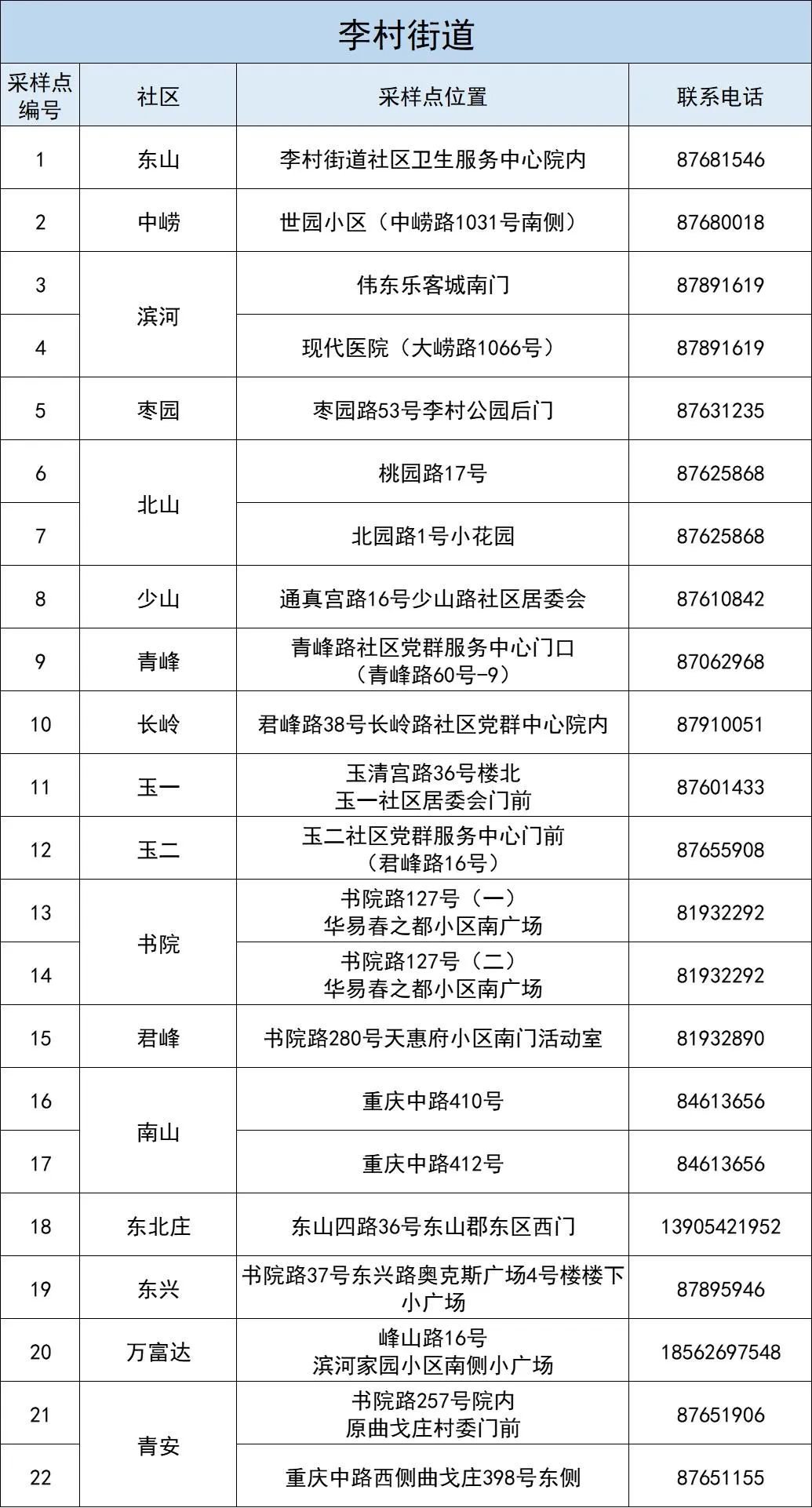李沧区“核酸检测服务圈”采样点详情见本通告下方。