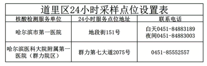 哈尔滨道里区区域核酸采样点位置表 哈尔滨道里核酸检测定点医院