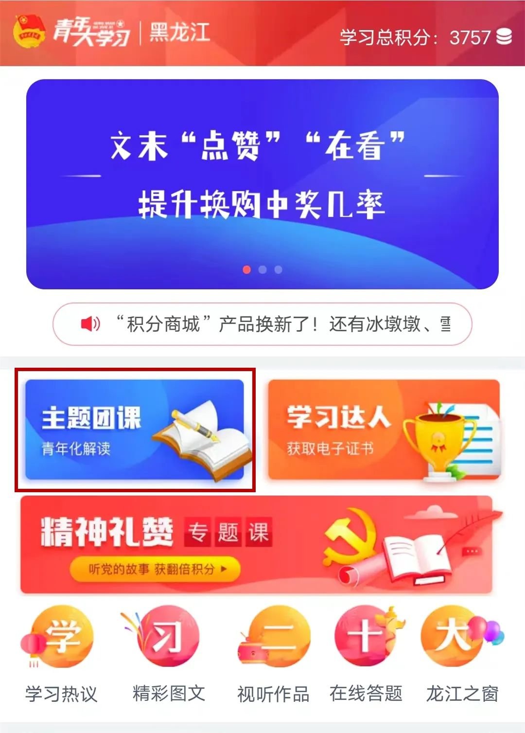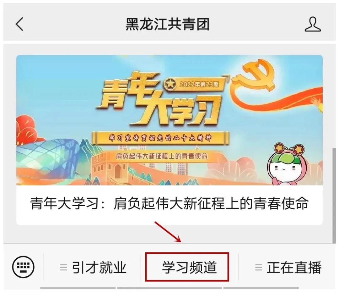 1:微信搜索“黑龙江共青团”微信点击自定义菜单“学习频道”