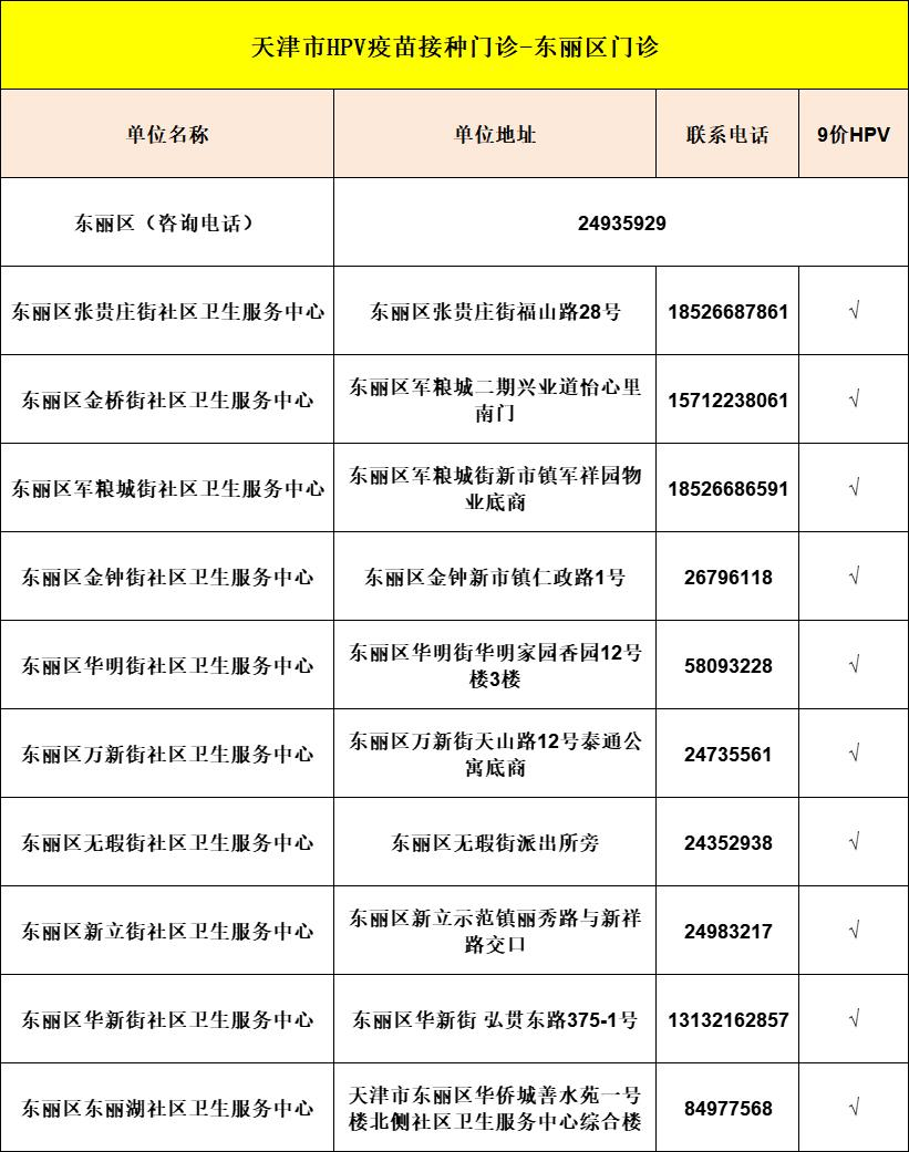 天津东丽区九价hpv疫苗接种医院有哪些?