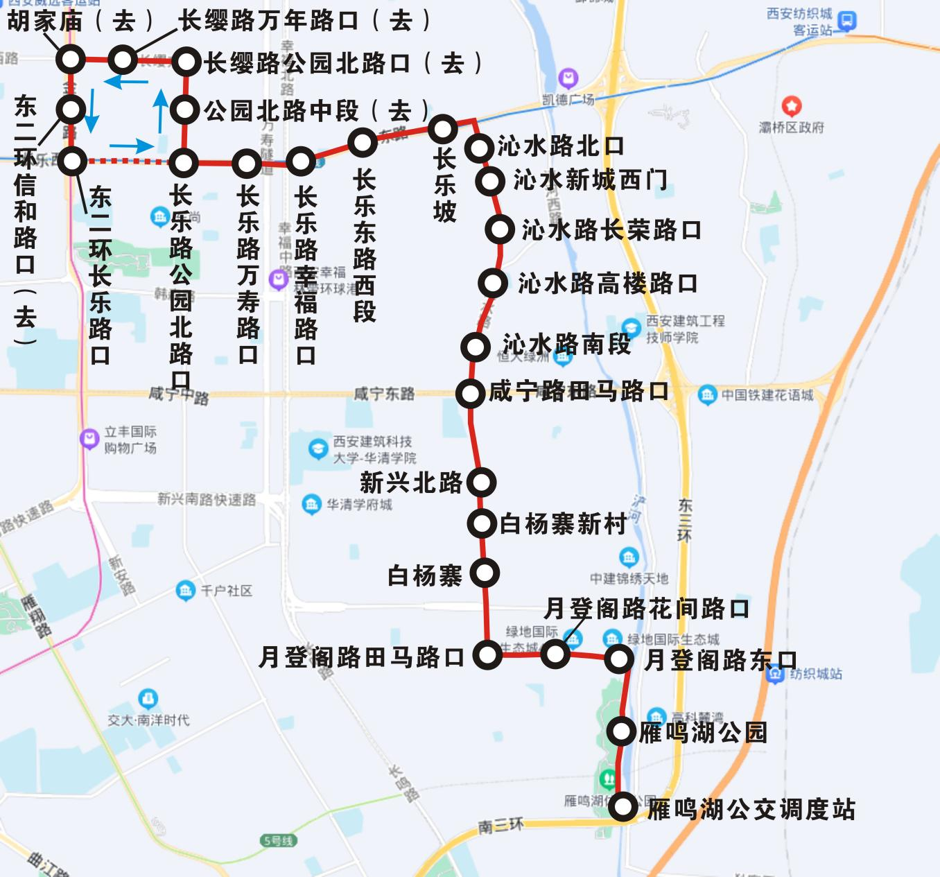 首末站:雁鸣湖公交调度站——东二环长乐路口
