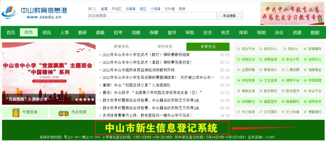 ▶第一步:通过中山教育信息港首页登录《中山市新生信息登记系统》。
