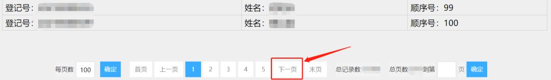 2. 在页面底部,点击【下一页】可查看更多的公布名单,【总记录数】即是报名该类别的总人数。