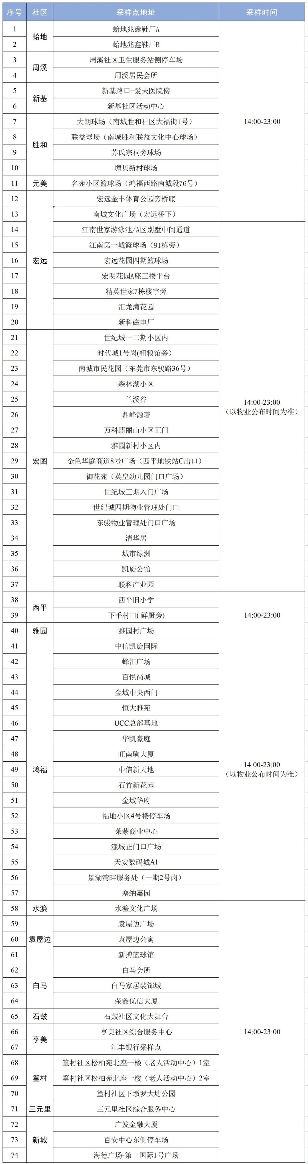 11月1日凌晨,南城发现1例新冠肺炎初筛异常个案,请到过以下场所的市民立即向所在社区报备并前往就近核酸检测采样点进行核酸检测。