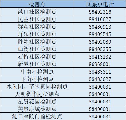 2. 民主社区检测点:港口镇文化中心广场(世纪西路2号);