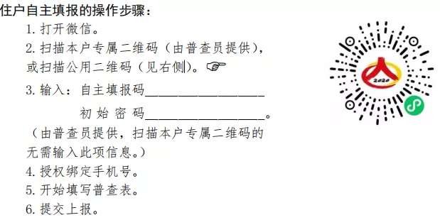 也可以选择自主填报的方式,那么要在普查员登门时予以说明,并在指导下完成自主填报,为短表填报。第一次时间为【10月11日-11月5日】;如果错过了时间,普查员会在11月6日-11月15日入户登记。长表登记户是随机抽取的,并且不能在网上申报,普查员会在11月6日-30日期间将再次入户登记。