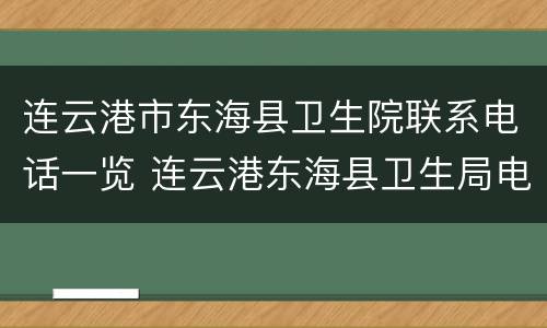 连云港市东海县卫生院联系电话一览 连云港东海县卫生局电话