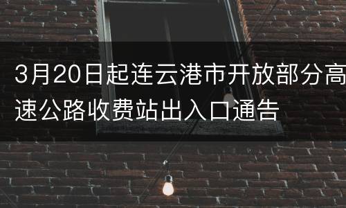 3月20日起连云港市开放部分高速公路收费站出入口通告