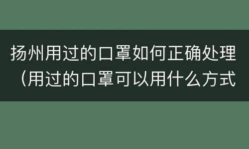 扬州用过的口罩如何正确处理(用过的口罩可以用什么方式处理)