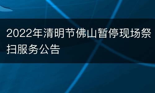 2022年3月27日,据佛山市民政局消息,受周边城市疫情发展影响,经佛山市疫情防控指挥部同意,佛山已于3月23日宣布暂停全市公墓、殡仪馆等殡葬服务单位祭扫服务,并计划于4月5日正清当天在佛山市殡仪馆举行全市鲜花代祭活动,借此替代市民缅怀先人、传递思念。