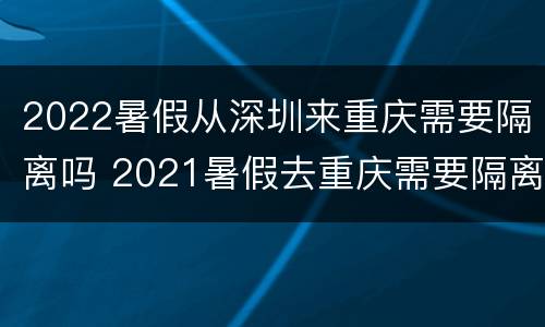 2022暑假从深圳来重庆需要隔离吗 2021暑假去重庆需要隔离吗