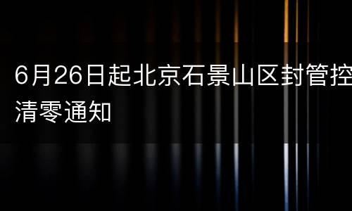 注意啦,注意啦,北京石景山区从6月26日起,全区封(管)控区全部解除封(管)控措施,实现了清零目标!