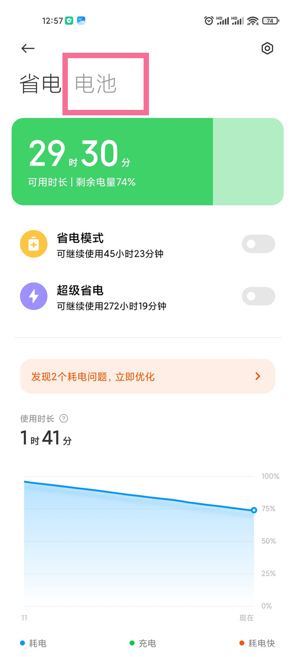 2、点击【电池】。