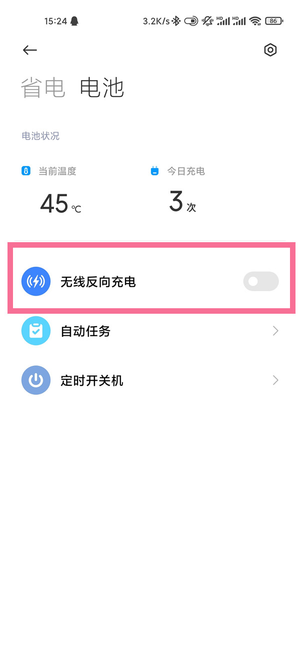 3、打开【无线反向充电】右侧的开关,将手机与需要充电的设备背靠背即可。