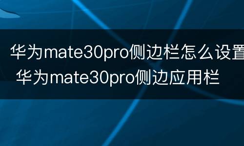 华为mate30pro侧边栏怎么设置 华为mate30pro侧边应用栏