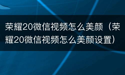 荣耀20微信视频怎么美颜(荣耀20微信视频怎么美颜设置)
