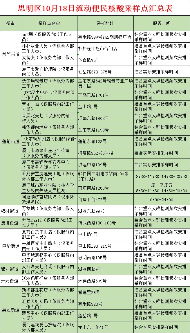2022厦门核酸检测点时间+地点(2021厦门核酸检测点)